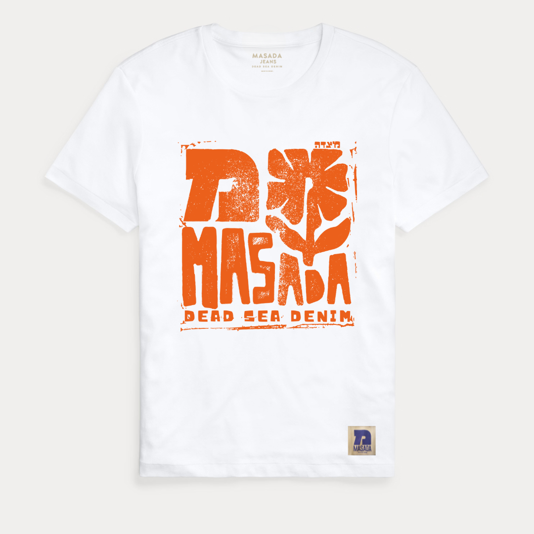 This iconic T-shirt, made from organic cotton, captures the soul of Masada Jeans: heritage, nature, and conscious style.